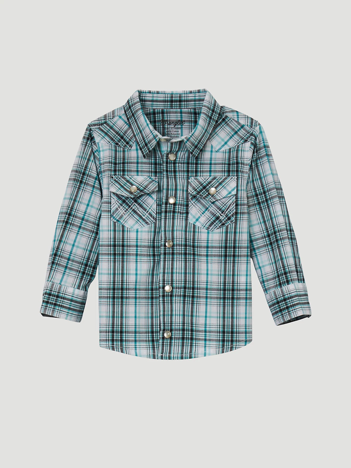 Finally, a shirt that can stand up to his horseplay. This Western snap cotton shirt comes equipped with a wrinkle resist finish, meaning it will stay crisp throughout the day. Authentic Western details like front and back yokes, snap flap pockets, and a spread collar guarantee true cowboy style.