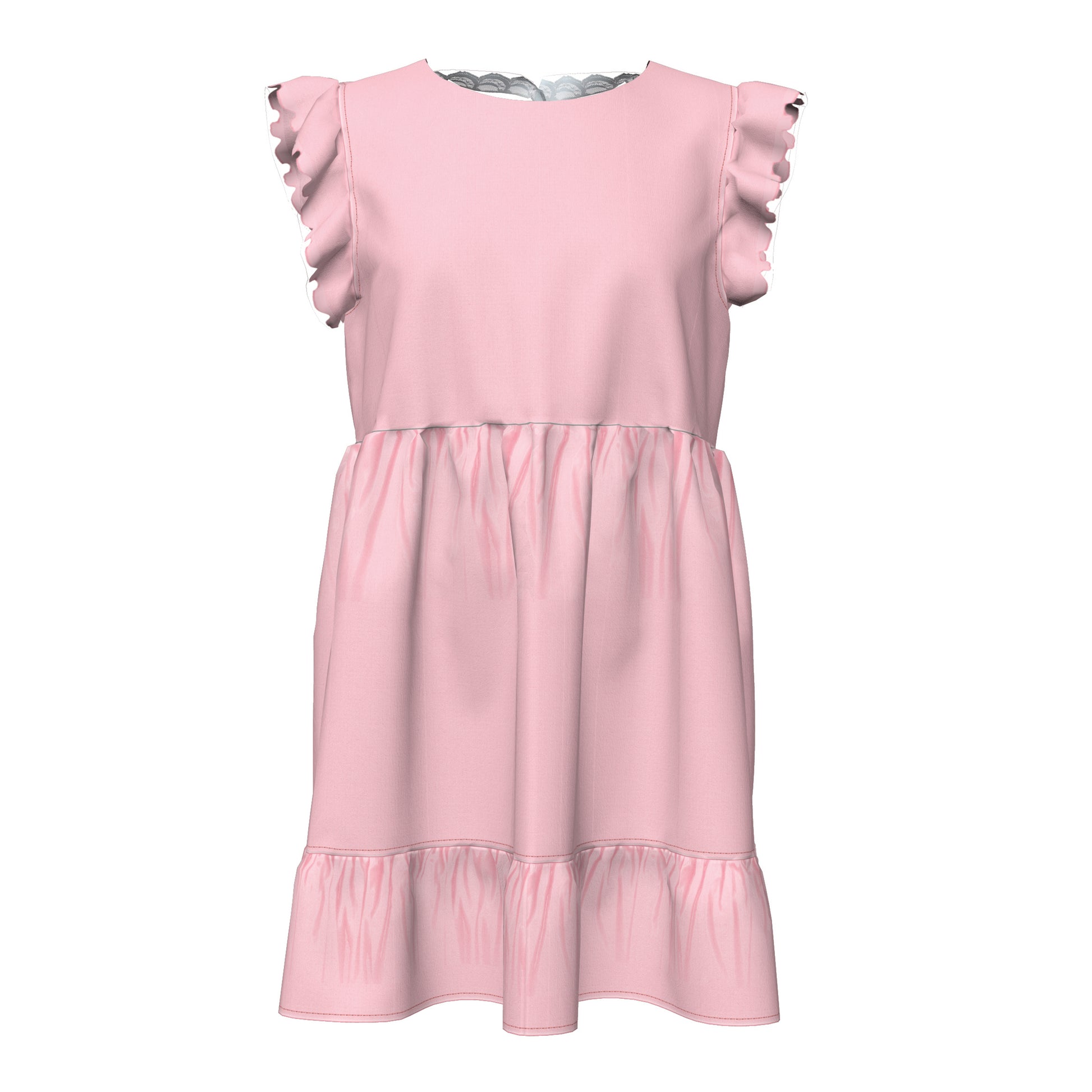 Any little girls must have for the spring. Beautiful light pink ruffled dress, with a lace tie in the back