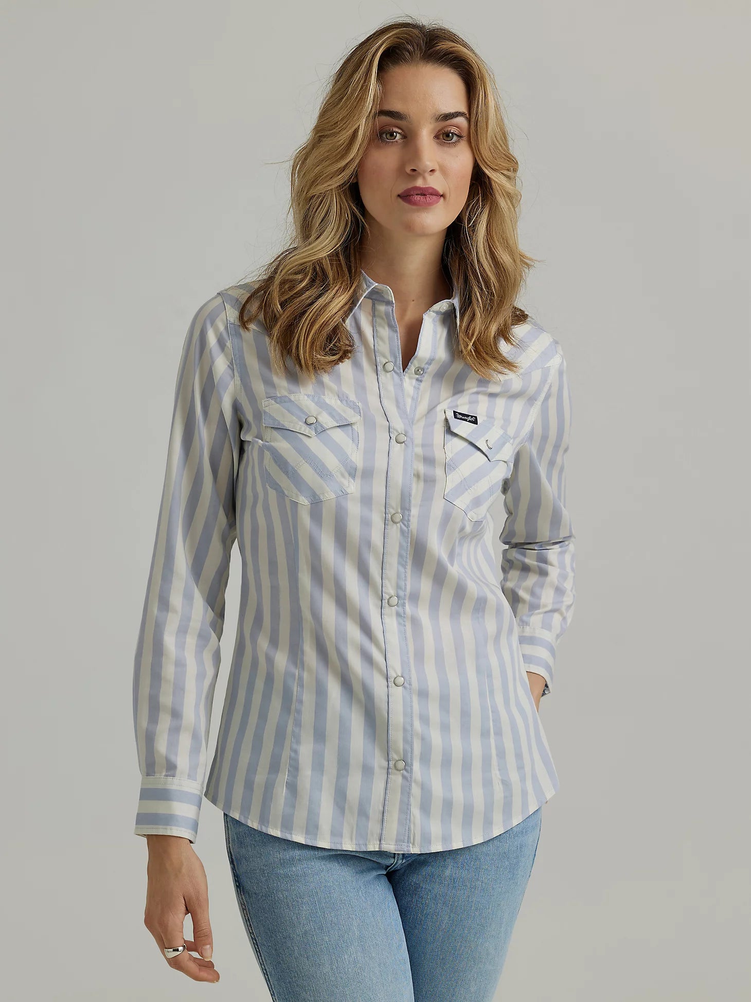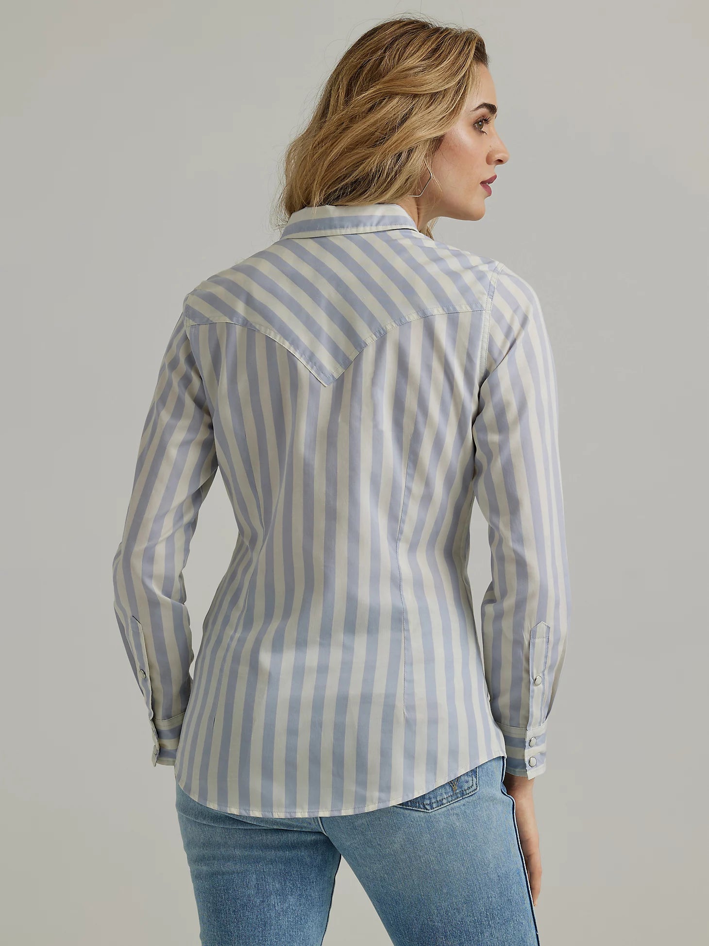 Women's Wrangler All Occasion Western Snap Shirt in Blue Stripes